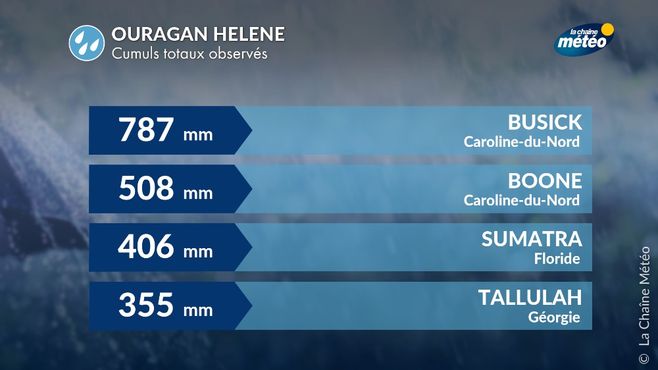 Cumuls totaux lors de l'ouragan Helene © La Chaine Météo