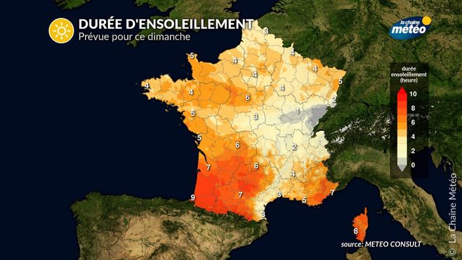 Les températures maximales progressent avec l'ensoleillement par rapport à ce samedi. Le thermomètre a plus de mal à progresser près de la Belgique avec 10 à 11°C sur les Ardennes. Il fait plutôt de 13 à 17°C ailleurs sur la moitié nord et plus de 23°C dans le sud. Des pointes à 25-26°C sont possibles à Biarritz.