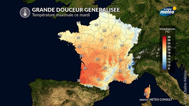 Jusqu’à plus de 30°C dans le sud, par effet de foehn