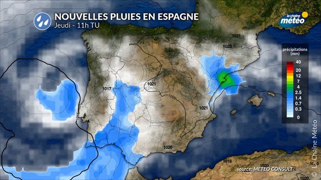 Encore des pluies près de Valence, fortes pluies en Andalousie