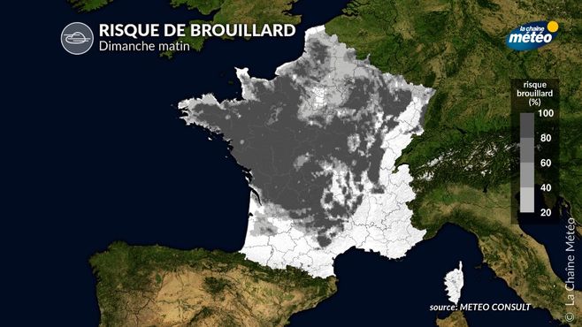 Risque de brouillard dimanche matin © la chaîne météo