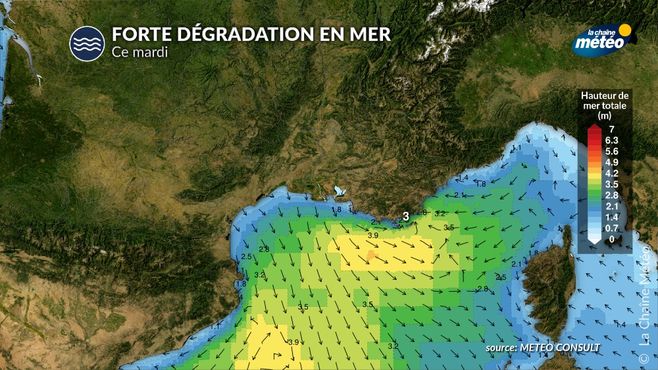 Hauteur des vagues en Méditerranée ce mardi © la chaîne météo