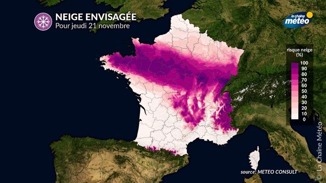 Zones les plus à risque de neige jeudi © La Chaine Météo