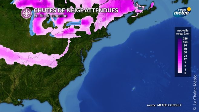 Comme souvent en Amérique du Nord, les grands froids descendent brutalement de la zone arctique et descendent rapidement vers le sud. Cette vague de froid concernera surtout le nord des USA et la région des Grands Lacs, ainsi que le Canada. Cet air glacial envahira ce quart nord-est du territoire dès mercredi et fera baisser les températures de 10 à 15°C sous les moyennes de saison. Ainsi, à Chicago, les températures devraient atteindre -10°C samedi, sans remonter au-dessus de -3°C au meilleur de la journée. Le vent provoquera un ressenti de -12°C.