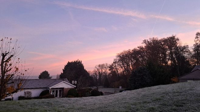 Le temps est sec mais assez froid sur un tiers nord-est. Le ciel clair de la nuit favorise la baisse des températures par rayonnement, et les gelées (faibles à modérées) sont fréquentes : vous grattez les pare-brise de vos voitures si vous devez partir tôt. Le lever de soleil était magnifique avec un léger voile de nuages élevés.