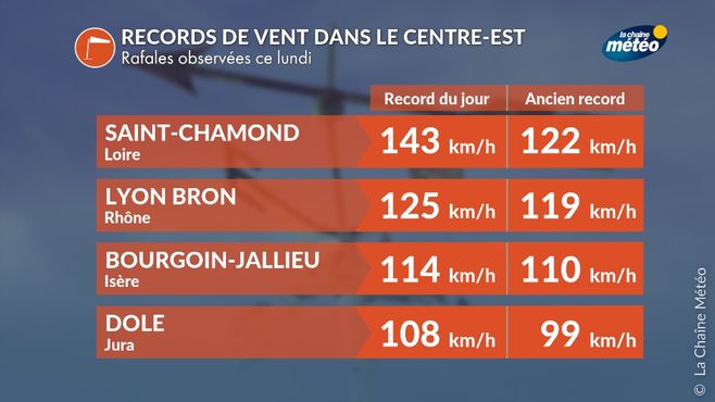 Records de vent dans le centre-est le 25 novembre © La chaine Meteo