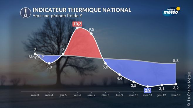 L'ensemble des modèles envisage une période du 8 au 13 décembre froide. Notre indicateur thermique national indique que ce froid, sans être exceptionnel, devrait durer plusieurs jours. Ce sont surtout les régions de l'est qui devraient être les plus impactées par ce froid.
