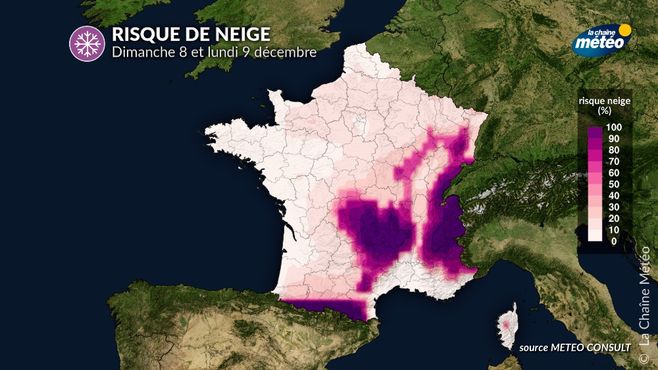 risque de neige dimanche 8 et lundi 9 décembre © la chaîne météo