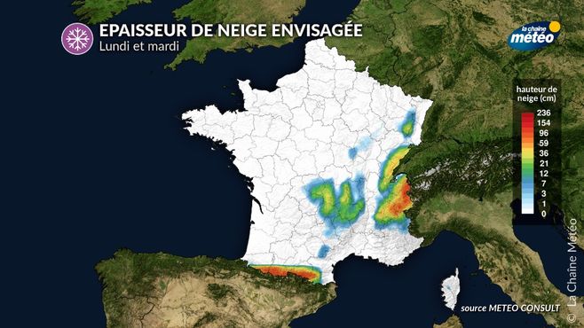 Neige au sol, épaisseurs envisagées © La Chaine Météo