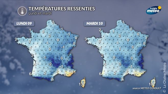 températures ressenties basses lundi et mardi après-midi © La Chaine Météo
