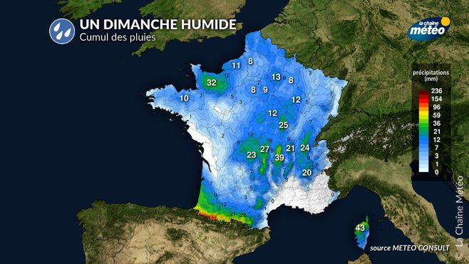 cumul des pluies ce lundi © la chaîne météo