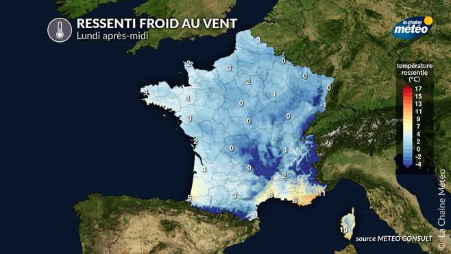 Ressenti froid au vent lundi après-midi © la chaîne météo