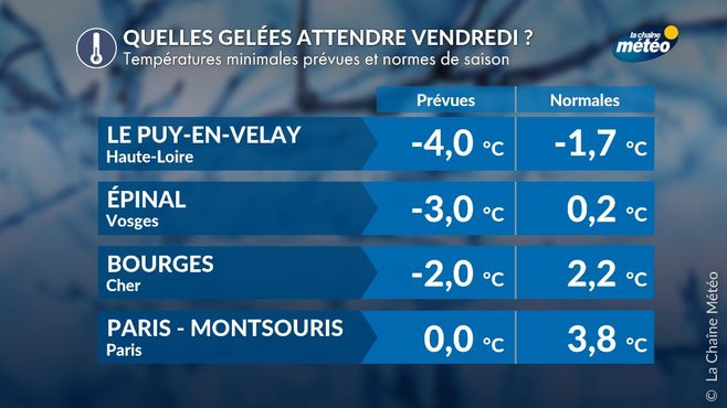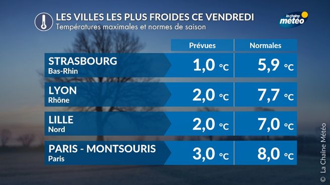 Villes les plus froides ce vendredi © La Chaine Météo