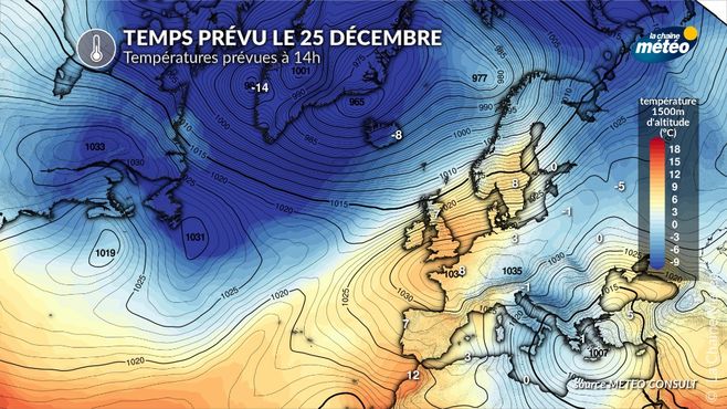 Conditions météo prévues pour le 25 décembre © La Chaine Météo