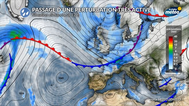 Passage d'une perturbation très active dimanche © la chaîne météo