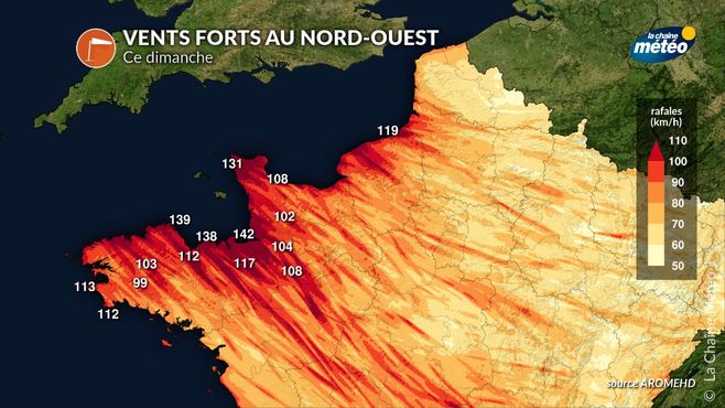 Coup de vent au nord-ouest dimanche © AROME / la chaîne météo