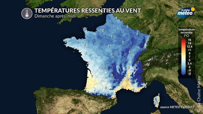 Températures ressenties au vent dimanche après-midi © la chaîne météo