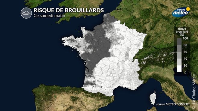 Zones exposées au brouillard pour ce samedi matin © la Chaine Météo