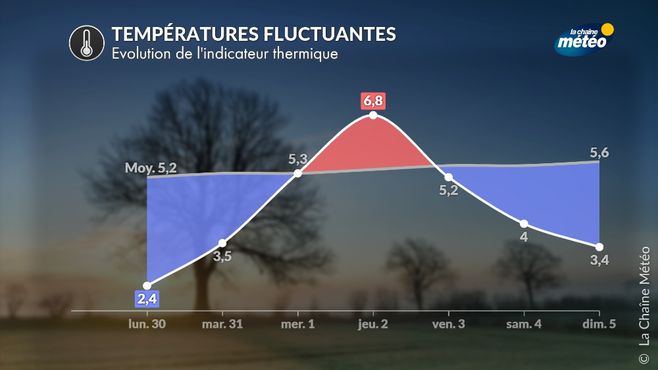 Après le froid brumeux actuel, un redoux transitoire se fera sentir autour du 1er janvier, au passage de la perturbation. Puis, la baisse sera rapide. Ainsi, pour le premier week-end de l'année 2025, les températures devraient repasser sous les moyennes à l'échelle nationale. Cependant, ce froid restera sans excès. Cette tendance hivernale pourrait ensuite s'estomper lentement après le 5 janvier malgré une fiabilité encore limitée à cette échéance.