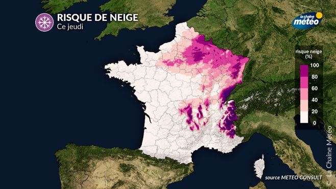 Avec la baisse des températures qui s'affirmera en fin de semaine, les flocons pourraient saupoudrer les Ardennes, le Morvan ou les plateaux lorrains, mais les quantités devraient rester assez faibles. De fait, nous n'attendons pas d'épisode neigeux en plaine même si des giboulées sont attendues dans une atmosphère instable et froide en plaine au nord de la Loire à partir de jeudi.