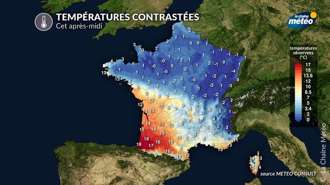 A 16 h 30, le froid résiste toujours dans l'est et le nord du pays où le dégel est lent.