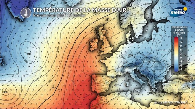 Alors que le défilé des perturbations se poursuit dans la douceur, les températures vont baisser ce week-end et la semaine prochaine. L'important conflit de masses d'air qui se produit actuellement en Europe finira par donner l'avantage à l'air froid.