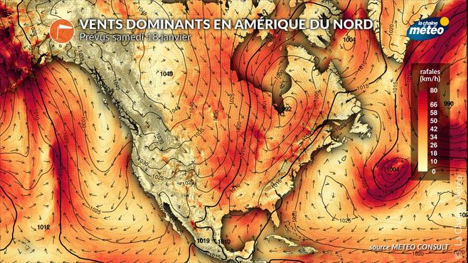 Vents dominants prévus en Amérique du Nord pour ce week-end © La Chaine Météo