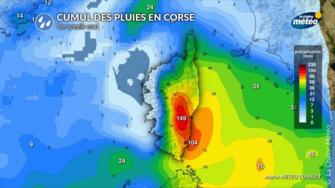 Fortes pluies en Corse ce week-end © la chaîne météo