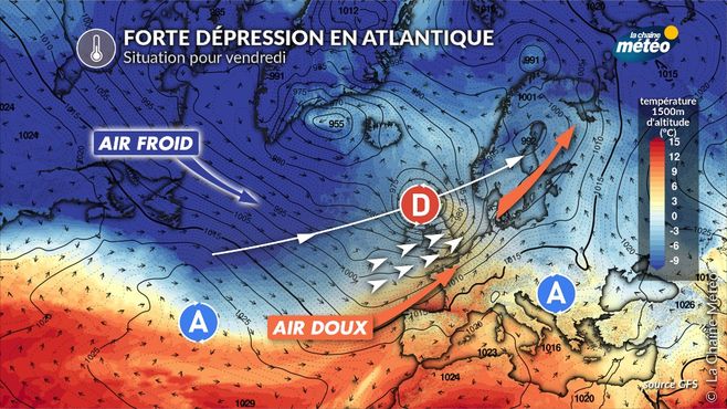 En lien avec un jet stream très rapide cette semaine au-dessus de l'Atlantique, provoqué par la vague de froid américaine, de profondes dépressions vont se creuser entre l'Islande et les iles britanniques. Le Royaume-Uni pourrait connaitre une tempête vendredi. La France, plus à l'écart, ne devrait subir qu'un coup de vent habituel pour la saison.