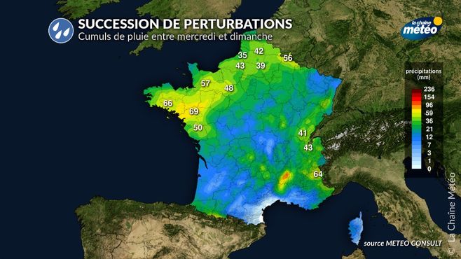 Cumuls de pluie de jeudi à dimanche © La Chaine Météo
