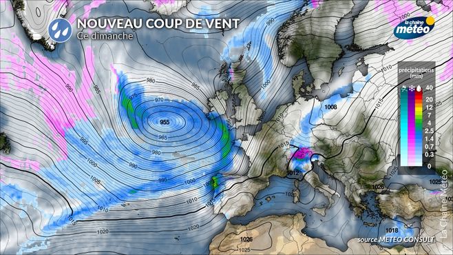 Depuis le milieu de semaine, le flux océanique a repris sur l'ensemble de l'Europe de l'Ouest, chassant l'anticyclone qui était bien installé sur l'hexagone pendant plus d'une semaine. Cette reprise active du flux océanique s'est déjà matérialisée par une dépression très creuse, une « bombe météorologique » qui a frappé de plein fouet l'Irlande vendredi sous le nom d'Eowyn.