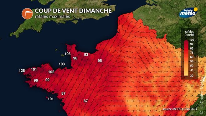 rafales attendues ce dimanche © La Chaine Météo