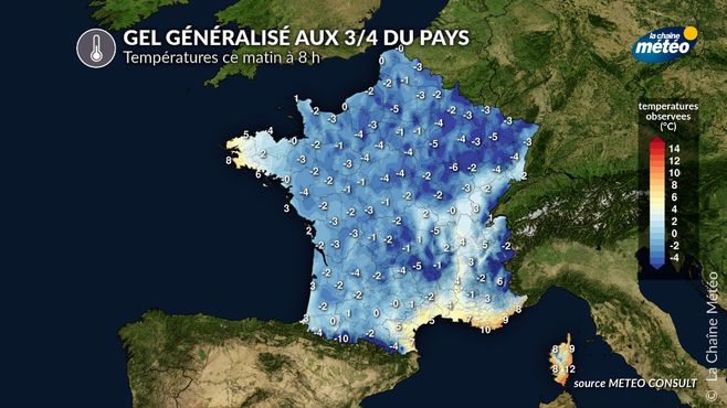 Gel et gelées généralisés ce dimanche matin © la chaîne météo
