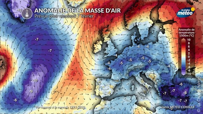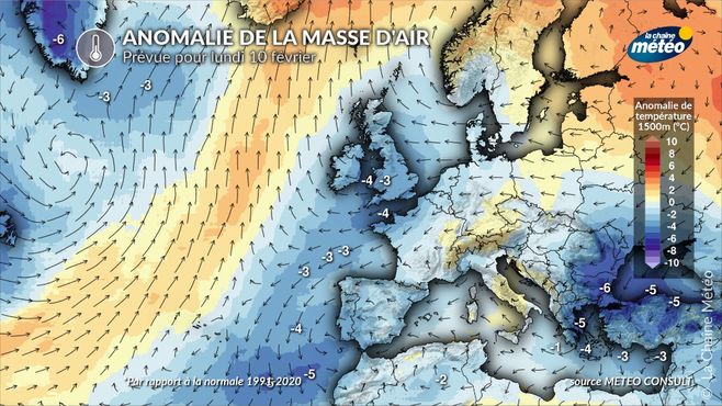 Anomalie de la masse d'air pour le 10 février © La Chaine Météo