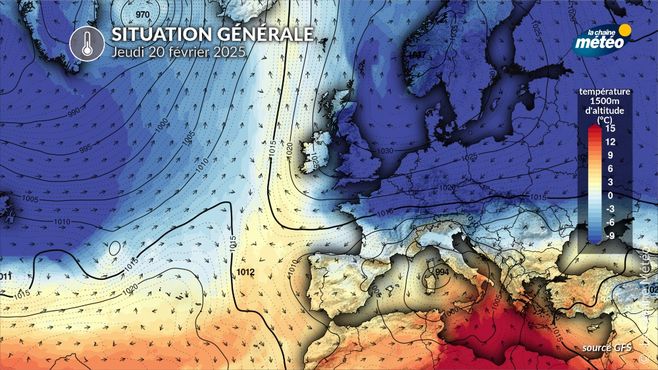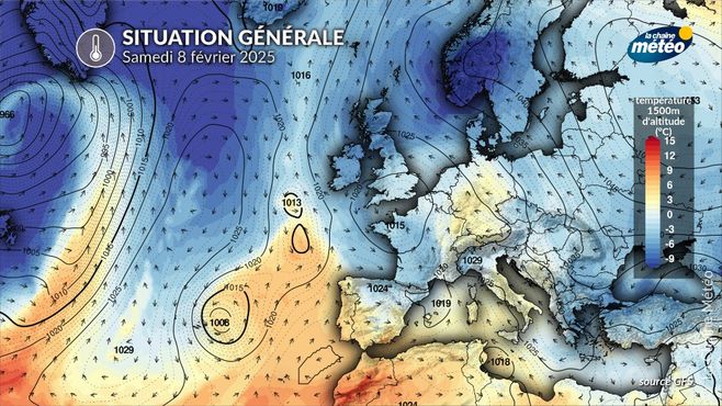 Les réserves d'air froid actuellement sur le continent eurasien sont assez pauvres. En effet, janvier a été doux en Ukraine, sur l'ouest de la Russie et en Biélorussie. À Moscou, par exemple, l'excédent atteint +6°C par rapport à la normale. Cela signifie que même avec un flux orienté au secteur nord-est, donc favorable à des descentes d'air très froid, on ne parlerait quand même pas de vague de froid potentiellement. L'enneigement réduit en Russie et l'absence d'un vortex polaire bien structuré ont limité les potentiels de refroidissement significatif sur l'Europe de l'Ouest.