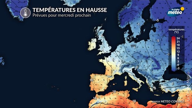 Températures prévues pour mercredi prochain après-midi © La Chaine Météo