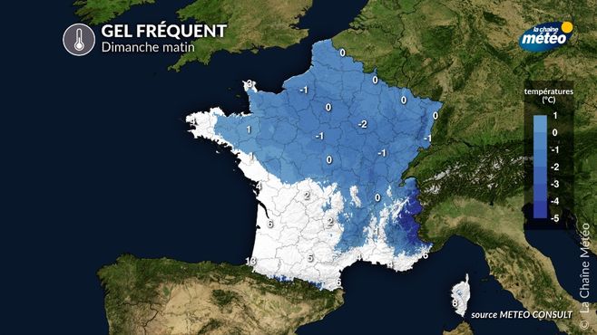 Les températures évoluent au lever du jour de -3°C en Alsace et dans les Ardennes à 11°C au pays basque.