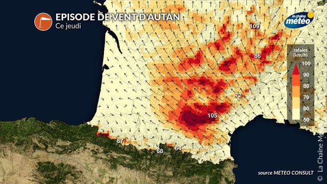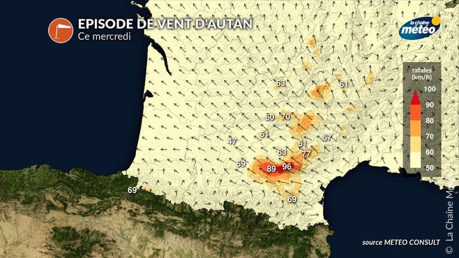Fort vent d'autan ce jeudi 6 mars © La Chaine Météo