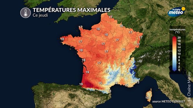 Résultat, les températures maximales devraient atteindre les 18 voire 19°C en Ile-de-France, 17°C à Strasbourg ou encore à Lille. Au sud-ouest, elles seront également élevées, mais le ciel va se charger en marge des intempéries sur le Languedoc.