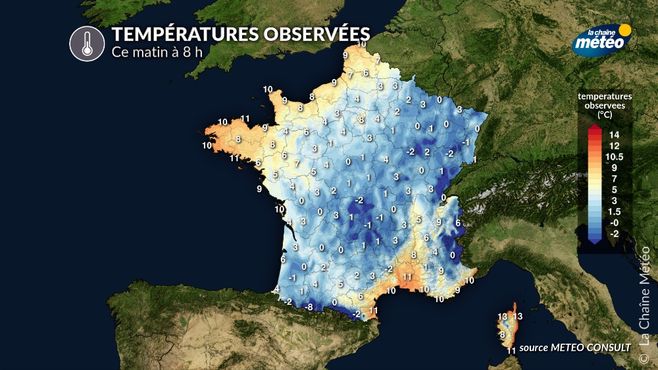 Températures ce dimanche matin à 8 h © la chaîne météo