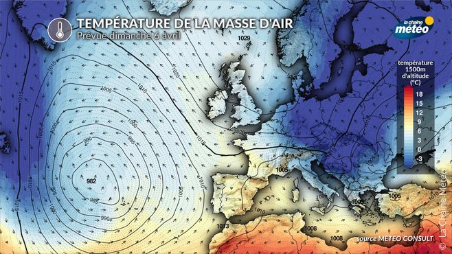 La situation météorologique européenne actuelle, avec un anticyclone omniprésent sur la partie nord du continent, pourrait bien se prolonger en première quinzaine d'avril. En conséquence, le déficit pluviométrique va se poursuivre sur ces secteurs tandis que de l'air froid continental pourrait faire planer la menace de gelées tardives.