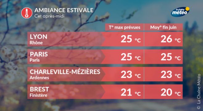 Les températures restent clémentes, propices à des dîners en terrasse ou des promenades nocturnes. Le ciel dégagé sur la plupart des régions permet d'admirer un beau coucher de soleil printanier.