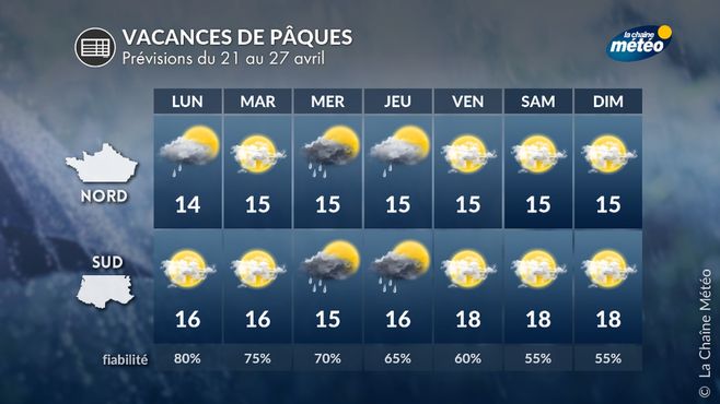 Pour cette troisième semaine de vacances, du 21 au 27 avril, post-festivités de Pâques, le temps s'annonce encore assez mitigé, bien que moins perturbé que cette semaine.