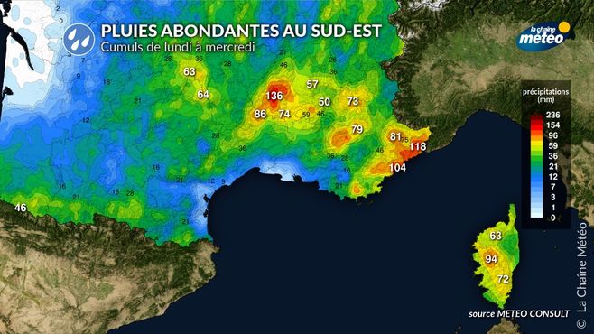 Pluies abondantes de lundi à mercredi au sud-est © la chaîne météo
