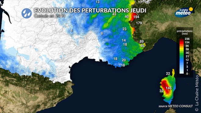 Cumuls de pluie attendus au sud-est ce jeudi © La Chaine Météo