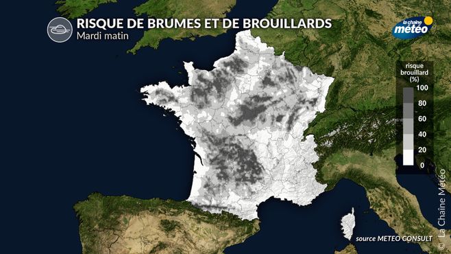 Risque de brouillard lundi matin © la chaîne météo