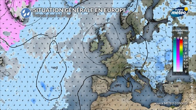 Un anticyclone pourrait regonfler sur l'Angleterre pour le 8 mai © La Chaine Météo