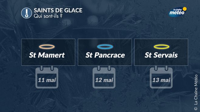 Les Saints de glace sont associées aux fêtes de saint Mamert (11 mai), saint Pancrace (12 mai) et saint Servais (13 mai). Au cours de ces 3 journées, les températures matinales sont scrutées avec attention par les jardiniers, maraîchers et agriculteurs car les anciens avaient observé que les dernières gelées en plaine se produisaient à cette période de l'année. Si cette croyance est enracinée dans l’observation empirique, elle est aujourd’hui à relativiser avec l’évolution du climat et la tendance au réchauffement.