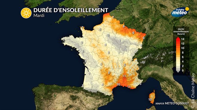 Durée d'ensoleillement mardi © LCM