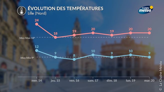 La fraicheur restera très sensible le long des côtes de la Manche et de la mer du Nord, en raison de la bise (autour de 14°C). De plus, des nuages bas maritimes auront tendance à s'étaler sur ces régions, notamment en Normandie et sur les Hauts-de-France, près de la mer.